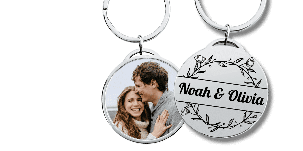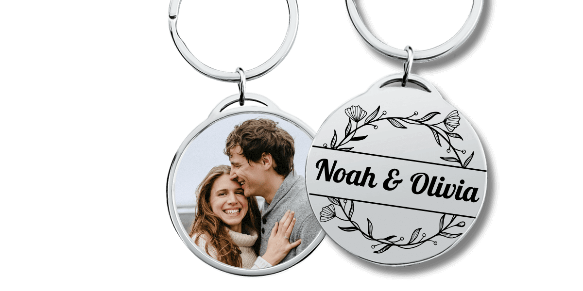 Gepersonaliseerde Sleutelhanger met 2 Rondjes en Gegraveerde Foto