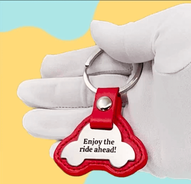 • Gepersonaliseerde Gegraveerde Autosleutelhanger met Leer