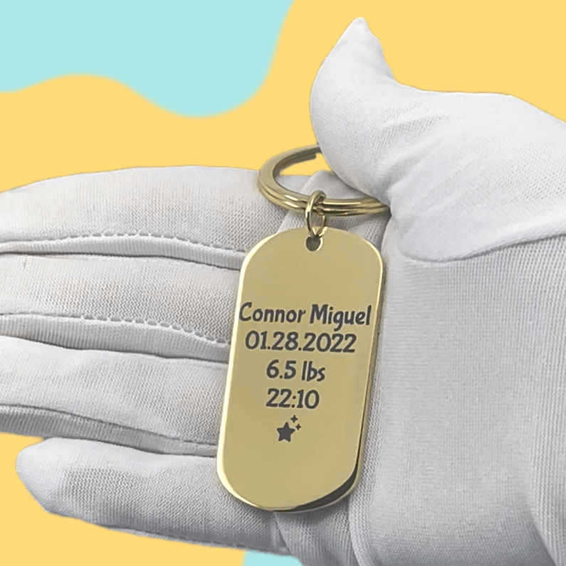 Geef een uniek, persoonlijk cadeau met onze Gepersonaliseerde Sleutelhanger met 2 Rondjes en Gegraveerde Foto, waarmee je zowel het grotere rondje met een persoonlijke foto als het kleinere rondje met tekst kunt graveren.